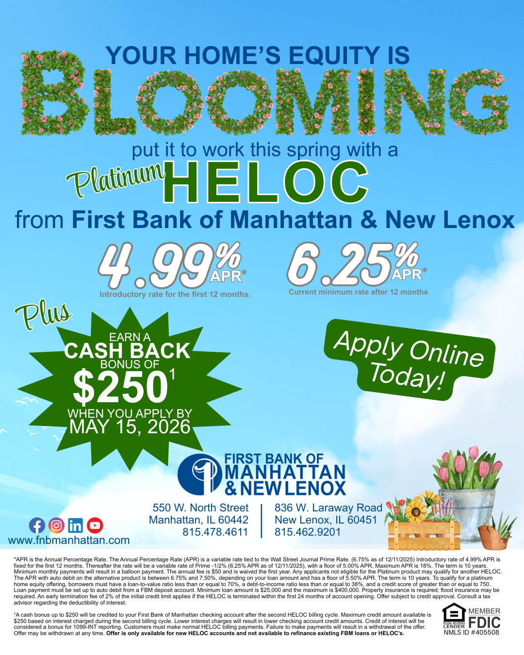 First Bank of Manhattan & New Lenox are full-service banks with branches in Will County, Illinois.